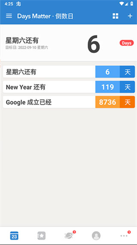 倒数日app下载安卓版是一款功能全面的日期记录软件,该软件最大的功能就是能够帮助用户记录生活中重要的事情,在到达设置的日期之后,就会自动提醒,帮你记住重要的日子,用户可以通过倒计时的方式来达成一个小目标,很多时候有很大的促进和帮助作用,再也不会忘记任何重要的事情!有需要的用户可以在本站下载体验。