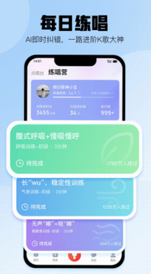 可以根据你当前真实的唱歌水平,制定体系化、专业化练唱课程,坚持完成每日练唱计划,即可快速掌握K歌技巧,唱歌悄悄变好听,随口唱出好歌声。