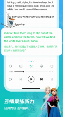 3、体系学:动漫电影专项口语训练,帮助不同语言学习阶段的用户,设计体系化、专业化的学习体验,每天20- 30 分钟,AI智能评估体系,呈现清晰学习报告,实现可视化的语言学习效果。