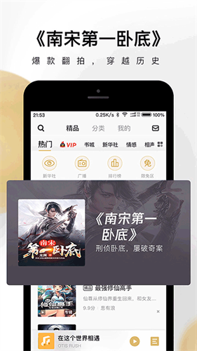 有声小说:择天记,人民的名义,外科风云,张震讲故事,鬼吹灯合集,盗墓笔记合集,斗破苍穹,麻衣神相……从最新潮到最经典,给爱看小说的你一个聆听的机会。