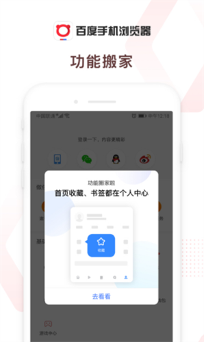 云同步,主屏幕和收藏栏的个性数据随百度账号携带。登录百度账号,可选择自动快捷登录百度相关站服务。支持导入本地ie收藏夹的内容和html文件,针对浏览器的html也可一键导入。