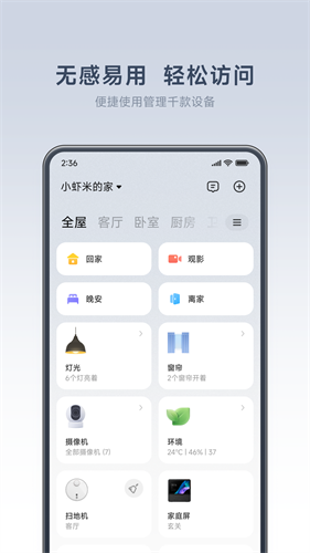 米家app官方免费下载最新版本是一款小米旗下的米家智能物联网客户端软件,可以在控制家庭中的智能产品,做到一键快速链接,自由智能家居设定,家电情况查看,适用于小米出品的各种智能家用电器。可以通过手机与各智能硬件交互,并实现它们之间的互联互通,让你的日常生活更加便利。
