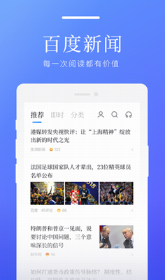 百度新闻app手机版是一款百度出品的新闻应用,内容涵盖了新闻、时尚、体育、约了、生活、创意、人文等10大类的精品阅读资源,还拥有即时推动功能,能够即刻获取实时新闻进行推荐,让用户了解现下热门事件,更有精准“个性化推荐”技术,用得越多,百度新闻越懂你,有需要的朋友们欢迎前来下载体验。