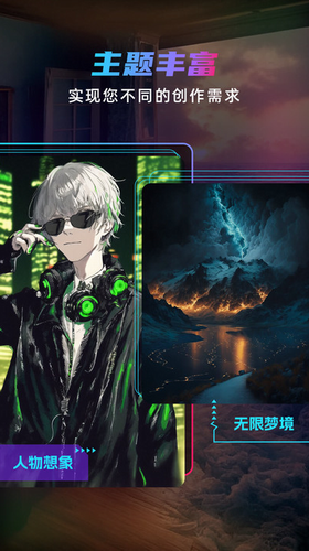 1、风格随心所欲,美术风格多样,任君选择,纯AI绘画,实现你心中的奇思妙想。