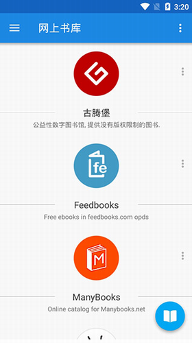 4、这款软件支持多个在线书库,内容丰富全面;已加入书库包括书仓,HIFIWIKI中文书站,古腾堡等,并在持续增加中。