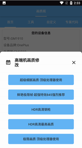 1、一键修改画质的帧数,在游戏之中获得更为清晰和流畅的游戏体验。