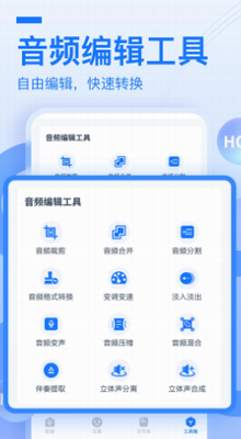 3、音频编辑工具:支持音频裁剪、合并、分割、变速变调、压缩、混合、伴奏提取等功能。