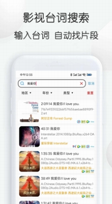 4、电影台词 搜索直达:影视经典语句,输入即可自动搜索出现过的影视片段,轻松帮您找台词。
