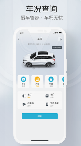 2、远程控制:这款软件还支持手机APP对车辆进行远程控制:如解闭锁、开闭天窗、开关空调、闪灯鸣笛寻车等。