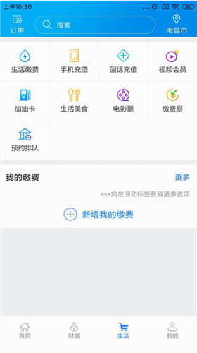 5、而“生活”栏中,就是提供了如生活缴费、充值中心、视频会员、加油卡等服务满足你一切日常需求。