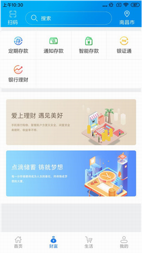 4、在“财富”栏中,你还可以选择如定期存款、智能存款、银行理财等来正确管理你的资金;