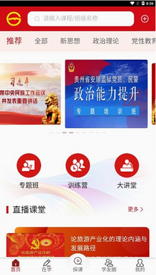 《贵州网院app官方下载安装最新版》是一款由贵州省党员干部网络学院特别推出的线上学习教育平台,这款软件里面拥有丰富的课程学习、直播课堂、优秀的文章、有声图书馆等教学资源,同时这款软件内置的在学、探课、学友圈等功能帮助你快速上手学习阅读文章、了解题目资料,随时点开手机便能轻松一键开始学习,还有海量的学分等你来拿,并且这款软件为了党员们更好的了解到国家的最新政策,每天都会根据时政热点和国家领导人来推送相关新闻,帮助党员们能走在国家建设第一线,还能和其他党员们交流学习心得,一起分享学习方法,共同成为共产主义的接班人。