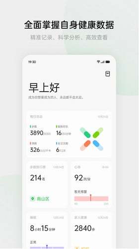 1、全面的健康数据:配合穿戴设备,提供完整的每日活动数据,科学的睡眠质量分析数据,丰富的运动记录数据等,让你的健康数据肉眼可见。