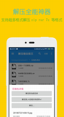 3、解压缩全能王这款软件的界面清新,还支持文件解压缩跟压缩,并且还支持超多格式解压zip rar 7z等格式。