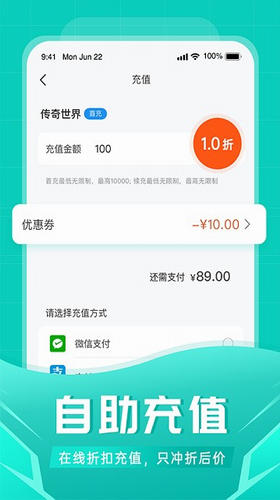 2、这款软件致力于为手游玩家提供福利的手游平台,并且平台玩家在游戏充值消费时可享受超低折扣,上线送优惠券,充值就打折。