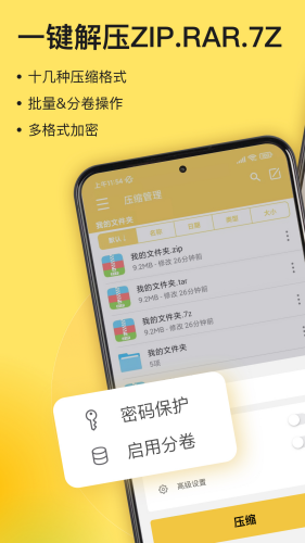 2、软件支持密码解压文件和支持ZIP,7Z加密压缩,并且还支持多种格式的文件预览。