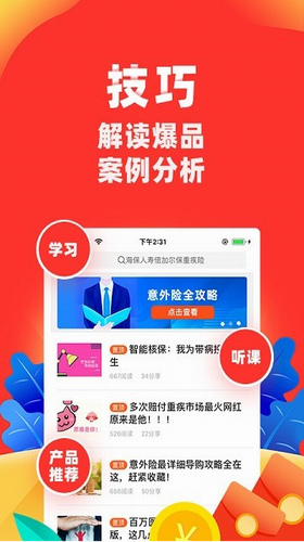 2、技巧:详解各类爆品,图文并茂、案例清晰,大咖手把手教你怎么卖保险。