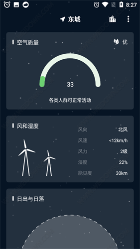 1、支持部分城市预警、小时预报、空气质量、桌面插件、通知栏、多城市、天气分享&提醒,可以自定义主页背景、桌面小部件字体与颜色。
