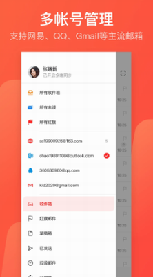 3、支持百万种邮箱,网易、qq、gmail、outlook以及各类高校、企业邮箱都可以添加到邮箱大师。