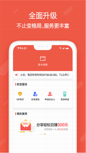 《刷宝app下载安装官方免费下载》是一款功能强大实用且专门为中小微商户设计的便携式移动收款App,这款软件支持所有银联卡刷卡付款、微信、支付宝扫码支付,采用T+0、T+1结算模式,最快2小时到帐方便快捷,同时在这款件内的功能有自定义日期查询订单,查询每日账单,让用户可以多维度全面立体分析店铺经营状况,还提供信用卡还款、转账汇款、手机充值以及商家营销等多种便民服务,也定期开展移动支付活动,用户可享费率优惠、物品抽奖等福利,并且这款软件是获得过央行颁发的《支付业务许可证》, 是为数不多同时拥有全国银行卡收单及移动电话支付牌照的第三方支付公司。