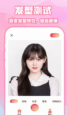 3、这里有长发、短发、刘海造型、不同发色,可按下快门就能看到自己改变发型的样子。
