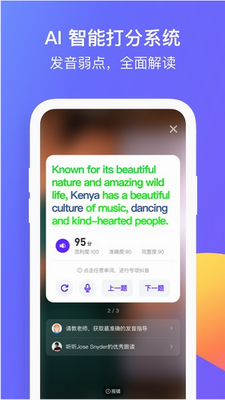 3、这款软件支持对发音、流利度、完整度等多重维度的口语评估打分。