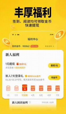 3、任务奖励享不停:新手红包、阅读时长、每日分享、邀请好友,完成任务即有大量金币和现金奖励! 现金可提现,提现门槛低、速度快。