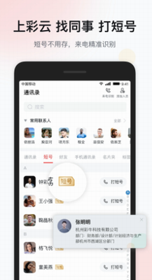 1、彩云通讯录:全面整合企业/个人/好友的通讯录,完整组织架构,可5秒找同事。