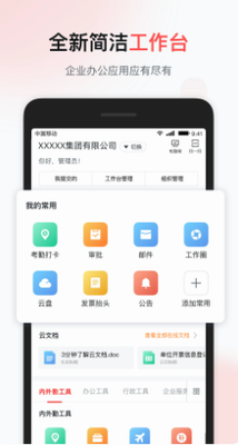 5、开放聚合:通过开放平台让重点行业应用、企业自有系统、和企业个性化办公需求接入彩云,统一工作门户。