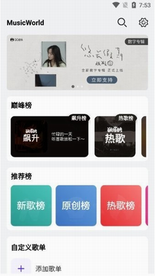 《音乐世界app下载免费版安卓手机版》是一款功能强大实用且音乐资源丰富的音乐播放类平台,这款软件的界面非常清爽且无任何广告,UI设计的也是非常精美,搭配上个性化设计,吸引用户的眼球,更有贴心的推荐音乐功能,根据用户的心情推荐不同风格的歌曲给用户,为用户打造出了一个全新的听歌平台,同时软件还汇集了当前各大热门歌曲和流行经典并按照不同的音乐风格进行划分,每日给出详细的热门音乐排行,让你掌握最新的热门歌曲,超高的歌曲品质和全面的音乐风格给你带来全新的听觉盛宴,并且这款软件内置五个强大的搜索引擎,包含了现阶段主流的音乐平台,例如:QQ音乐、网易云音乐等,诸多音乐作品都是支持用户下载离线欣赏,所有歌曲都可以直接免费听,没有任何付费或者VIP限制,感兴趣的用户快来下载体验吧。