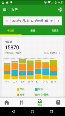 2、每天自动计算汇总卡路里数据,结合减肥计划,还可为饮食和健身提供数据参考。