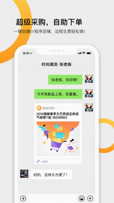 3、超级采购,自助下单:一键创建小程序店铺,远程生意轻松做。