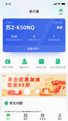 《易行通app手机版下载官网版》是一款功能强大实用的高速ETC综合服务平台软件,这款软件就是专门为用户设计,避免繁琐的功能界面,页面简单便捷,针对用户需求,根据交通车辆通行规定提供不同的办理模式,同时软件的功能包含ETC办理、通行费查询、通行费发票申请等,并且用户使用ETC通行,享受全国ETC通行费最低95折,最高85折起,已经有超过2亿用户办理ETC,通行方便、快捷,再也不用人工排队过高速了,感兴趣的用户快来下载体验吧。