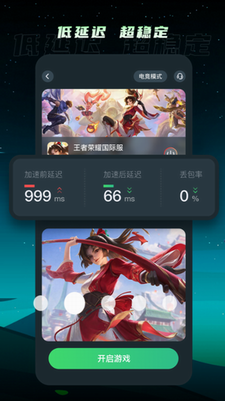 2、用户可一键开启游戏加速,随时都能选择极速的游戏加速服务,满足每个朋友的加速需求。