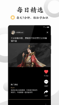 《看鉴app官网版》是一款功能强大实用的知识短视频软件,这款软件主要关注历史人文、自然地理、文化风俗等领域,每期节目用约3分钟时间,向用户普及历史、文化、知识,在娱乐身心的同时扩充知识储备,开阔眼界视野,同时通过这款软件,用户可以看到中国从古至今五千年的历史里程,还有国外的各种历史,轻松变身历史达人,历史爱好者的全新互动方式,全国历史达人为你回答一切不为人知的历史谜题,感兴趣的用户快来下载体验吧。