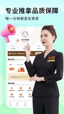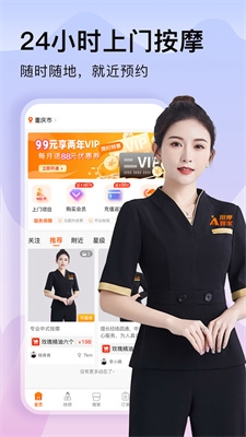 按摩到家app下载安卓版是一款专为那些希望在家享受专业按摩服务的用户打造的手机按摩预约平台,汇集了上百位经验丰富的按摩技师,用户可以根据个人需求在线选择,无论你需要中医推拿、油压按摩、足疗足浴、刮痧还是采耳服务,这个软件都可以满足相关需求,平台的所有服务项目的价格均明码标价,透明消费,没有隐形费用,通过智能定位功能,按摩到家能够根据你的位置匹配附近的专业技师,为你提供高效、优质的服务,感兴趣的话就来下载试试吧。