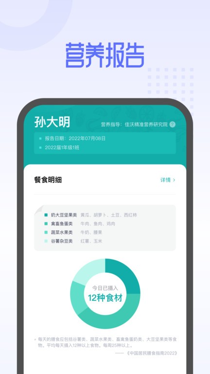 4、【营养服务】营养报告、营养课堂,充分量化在校就餐的营养摄入情况,更便捷的了解营养知识。