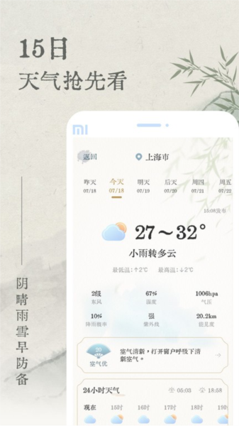 3、空气质量实时测,手机查看天气的同时,获取实时质量内容。