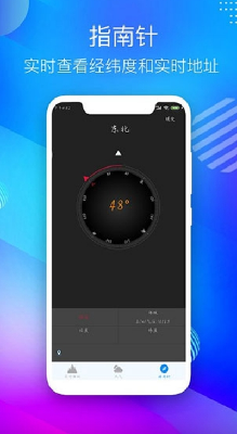 - 指南针:内置指南针功能,让你更快的获取所在地的方向以及经纬度信息;