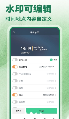 * 实时更新:水印可自动更新为实时的日期、地点、天气等信息,经纬度、海拔、速度、分贝也能记录