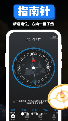 专业指南针app安卓版是一款手机必备的工具,这款软件可以让用户在日常生活中可以很容易地辨别方向,该软件的定位系统也非常智能。该应用程序中有一个实时地图功能,用户可以轻松找到他们想走的路线,并且自带测量功能非常的实用。可以让大家每天轻松的进行定位导航,可以打开指南针工具定位东南西北,能够精准的显示各项数据,想怎么使用都是可以的。带来的地图工具显示非常的清晰,可以切换不同样式的地图,想怎么查看都行。这款软件可以让用户在日常生活中可以很容易地辨别方向,该软件的定位系统也非常智能。该应用程序中有一个实时地图功能,用户可以轻松找到他们想走的路线,并且自带测量功能非常的实用。可以帮助你出门进行详细的定位,可以为你找寻东南西北的方位,让你导航更加的准确。线上还拥有地图可以查看,能快速查看当前的具体的位置,还可以进行实景导航,让你户外也不用担心迷路了。用户可以利用这款工具快速找到自己准确的方位。根据手机中的GPS卫星定位实时进行数据反馈,让你可以随时进行路线调整,而且没有网络的地方也能使用。可以记录每天、每周、每月的步数,设定目标。可记录卡路里消耗、里程和时间,万能计步器。多种皮肤风格自由切换,满足您对不同风格指南针的需求,UI美观简洁。
