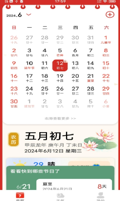 1、 万年历日历: 公历、农历,放假安排,传统节日和二十四节气日期标注提醒,更有详细的节日、节气科普介绍;
