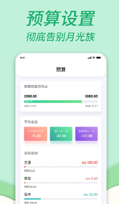1、自定义预算金额,可以实时监控消费支出,预算不超支,维护财务健康;