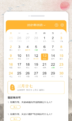 日历流量宝最新版是一款很好用的手机流量助手,体积小巧,不占用内存空间,日历信息可以实时查询,还会及时更新,通过这个平台就可以掌握更多的节气信息,不同的节日有什么来历以及习俗都可以看到,有任何重要日子也可以在线记录,非常的实用。软件除了基本的日历查询外,还具有日程提醒功能,国人开发的软件,最符合国人使用习惯的日历,简单、方便、美观、功能强大。相比较我们手机自带的日历系统,这软件的功能显得更加齐全,而且界面还非常的美观。不仅如此,365日历app使用起来也极其简单,有了它能提高你的工作与生活规划效率,不论是组织会议、聚会、亦或者是查看农历,阳历,黄历等各种日历,都可以满足你的各种需求。另外,365日历手机版中还提供了天气查看,你可以直观的看到未来几天的天气情况,以便于自己出门更加方便。并且最为一提的是,软件中更有星座运势、周公解梦、八字姻缘等更多超多实用功能,可带给用户许多意想不到的惊喜所在。软件能帮助用户管理时间和安排日程,了解吉时宜忌信息,具备独特功能和精准的吉时预测,让用户能高效地安排生活和工作。它提供吉时查询、日程管理和节假日提醒等功能,根据用户所在地预测吉时宜忌信息,提供参考建议,支持用户自定义日程提醒和吉时查询等功能,界面友好、操作简单、界面清晰易懂。用户好评其实用性和便利性,成为日常生活中的得力助手。