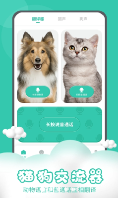 猫狗交流器最新版是一款有意思猫狗语音翻译工具,可以在这里记录你的宠物成长情况,让你养宠物有个不同的目标,不仅能与宠物们交流,也能帮你进行养宠,拥有更多有意思的体验功能。用户们在日常生活中就可以开启这个翻译工具,将那些猫猫狗狗的叫声翻译成自己听得懂的语言。那些家里面养了宠物的用户们就可以利用这个翻译器来让自己跟宠物猫跟宠物狗的交流更加的方便,在下达相应指令的时候也可以得到有效执行。轻松在此进行宠物语音录制翻译,能够实时了解掌握宠物想法和表达,使用操作非常简单方便;而且在该软件当中可以获取到超多宠物叫声资源,各种宠物催眠音乐歌曲一应俱全,不错的宠物百科工具可以让铲屎官们更好养育爱宠。内置超多强大工具体验,更多宠物娱乐交流玩法聚集于此。软件不仅能够促进人与宠物之间的交流和沟通,还能增加人们对动物保护的认识和关注,会根据用户的兴趣和习惯,推荐适合的宠物语言和相关知识,增加用户与宠物的亲密感和互动性。软件内置很多独特聊天翻译操作模式,大家可以自由进行宠物声音录制翻译解析,更好帮助铲屎官们读懂宠物心理表达和情绪变化,在此也可以进行人声宠物语言翻译,帮助爱宠更好读懂主人话语;在该软件当中可以畅通无堵与爱宠顺畅沟通,多种在线互译方式无压力体验。