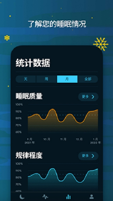 2、Sleep Cycle将您的睡眠数据与世界睡眠统计数据进行比较•打Sn趋势-查看历史打sn趋势数据