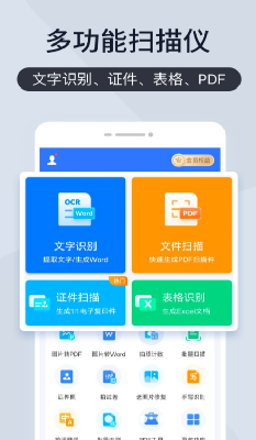 扫描王全能宝破解版是一款OCR拍照识别软件,它不仅支持现文字识别、手写识别、拍照识别、文件扫描、证件扫描、表格识别、批量扫描识别、格式转换、手写识别等功能,识别后的文字还可以进行编辑调整、翻译,并且可以导出为word、txt、PDF、图片等多种格式,功能非常全面,用户使用起来非常便捷。同时,app还能智能剪裁、移除杂乱背景、自由截取文字内容或单独区域,识别结果可以进行分段,格外的人性化,让你实时实现高效率办公。使用手机就可以实现文字识别、手写识别、拍照翻译、文件扫描、证件扫描、表格识别、扫描识别、格式转换等功能,识别后的文字可以进行编辑调整、翻译,并且可以导出为word、txt、PDF、图片等多种格式,是您的移动多功能扫描仪。为玩家带来了顶级的OCR扫描识别功能,让你可以识别图片文字上面的各种信息并且生成文档。操作简单便捷,还能进行格式转换,语言翻译,让你的办公更加简单轻松。该软件能够提取书籍、证件、照片、名片、表格中的文字,只需手机拍照需扫描的图片或选取相册照片,就能快速实现文字识别提取、表格识别、照片扫描、卡证扫描、拍照翻译等功能,并生成PDF或word文档一键轻松分享。