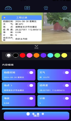 实时更新:水印可自动更新为实时的日期、地点、天气等信息,经纬度、海拔、速度、分贝也能记录;