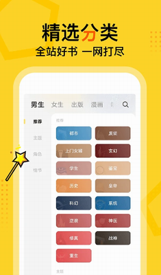 2、小说精准分类:只要打开分类的话即可按照男频和女频的分类标签寻找小说。