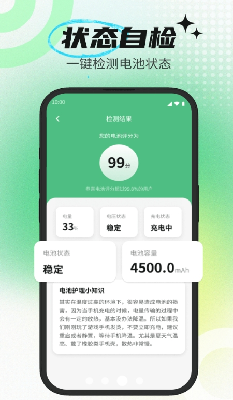 2、电池检测:专业手机电池健康度算法,带你轻松了解电池健康状态,电池状态实时检测。